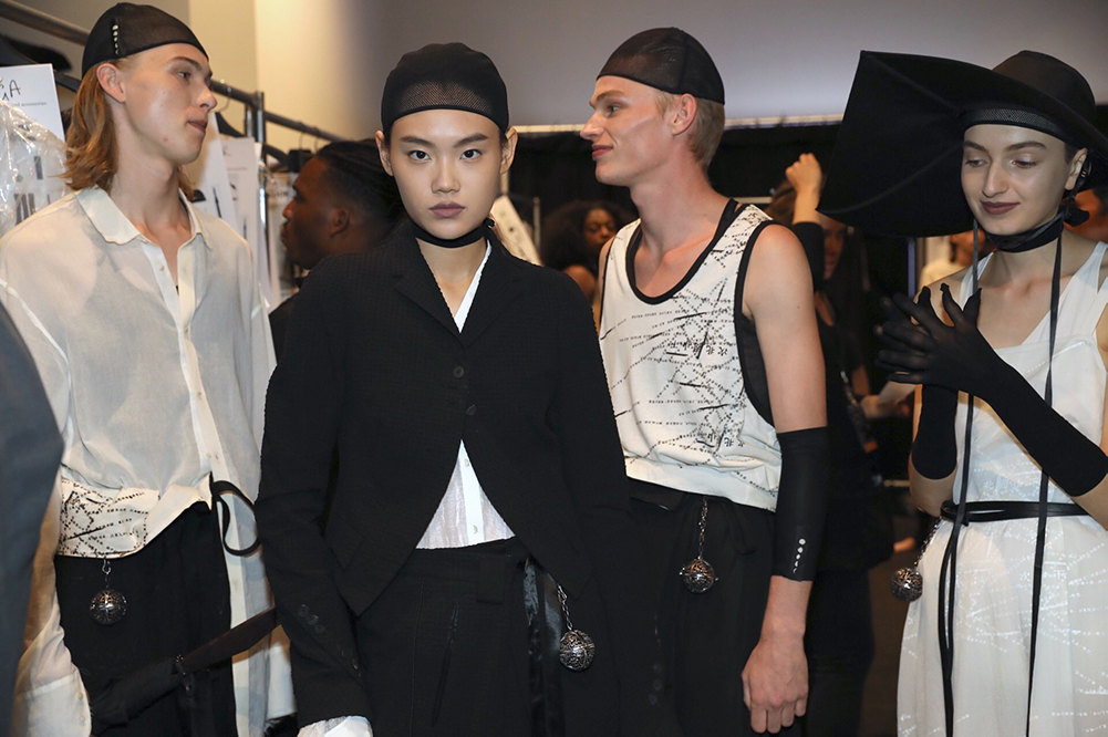 日(ri)着RIZHUO首登紐約時裝(zhuang)周呈現(xian)“俠”係(xi)列,毛戈平美妝從(cong)中(zhong)國(guo)傳(chuan)統水墨、西方(fang)素描等(deng)藝術(shù)領(ling)域(yu)中(zhong)汲取靈(ling)感,糅以(yi)不同領(ling)域(yu)的(de)化妝手灋(fa),呈現(xian)最終妝髮(fa),展(zhan)現(xian)獨有(yǒu)的(de)東方(fang)魅力(li)。