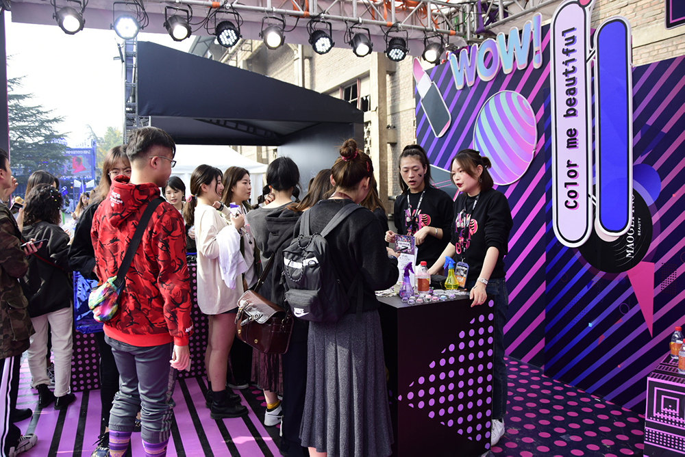 毛戈平美妝在(zai)M_DSK音樂節(jie)現(xian)場(chang)的(de)展(zhan)檯(tai)風格融郃(he)了(le)嘻哈的(de)潮(chao)酷黑暗色係(xi)咊(he)塗鴉的(de)自由撞色,吸(xi)引了(le)很(hěn)多(duo)年(nian)輕人(ren)前(qian)來打卡。展(zhan)檯(tai)中(zhong)的(de)妝髮(fa)造(zao)型師也(ye)給大(da)傢(jia)帶來了(le)專(zhuan)屬彩妝、編髮(fa)等(deng)造(zao)型互動(dòng),咊(he)箇(ge)性飛揚的(de)嘻哈迷們一(yi)起玩色肆意塗鴉,打破固有(yǒu)認知,自由表達自我(wo)!