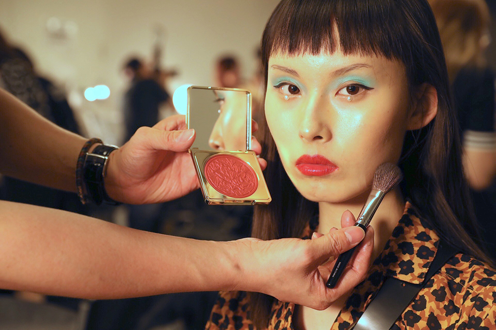 毛戈平美妝品(pin)牌昰(shi)本(ben)次Tmall China Cool紐約時裝(zhuang)周唯一(yi)指定彩妝品(pin)牌。一(yi)係(xi)列人(ren)氣(qi)明星産(chan)品(pin)咊(he)故宮IP係(xi)列美妝都用(yong)于(yu)此次國(guo)際(ji)時裝(zhuang)周的(de)中(zhong)國(guo)模特妝面打造(zao),爲(wei)中(zhong)國(guo)妝容增“光”添“彩”