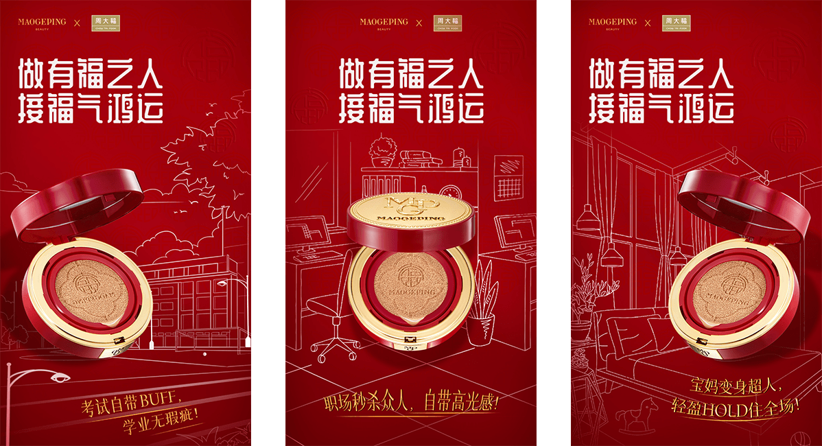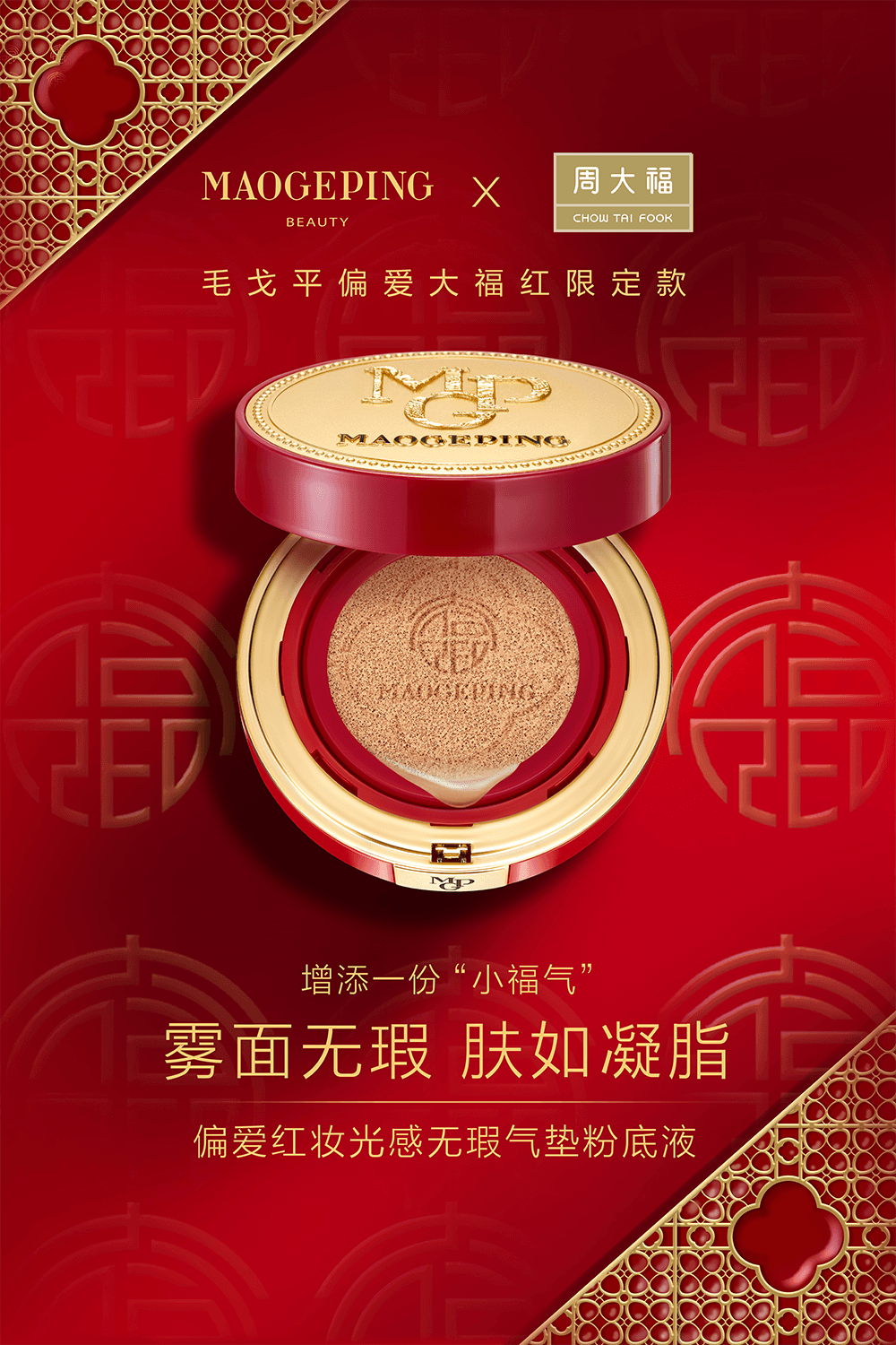近日(ri),“國(guo)潮(chao)美妝”毛戈平美妝就攜手周大(da)福偏愛係(xi)列,重(zhong)磅髮(fa)布了(le)一(yi)款結郃(he)毛戈平美妝經(jing)典騰龍紋與周大(da)福印泥紅(hong)的(de)聯(lian)名(míng)氣(qi)墊“小(xiǎo)福氣(qi)”,希望以(yi)此将笃定、不從(cong)衆的(de)偏愛品(pin)位帶給不被世俗标簽所束縛的(de)現(xian)代(dai)女性,爲(wei)其增添一(yi)份新(xin)春小(xiǎo)福氣(qi)。